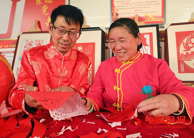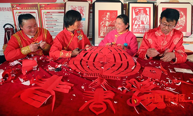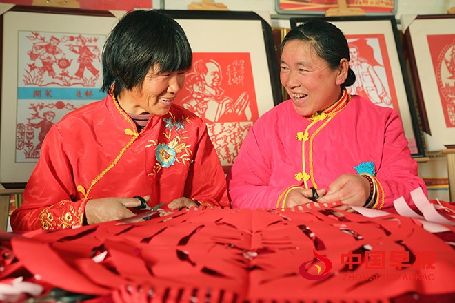 中国早报 河南讯(特约记者 李新义)1月13日,河南省开封市尉氏县庄头镇马家村的非遗剪纸艺人在剪迎新春剪纸订单。