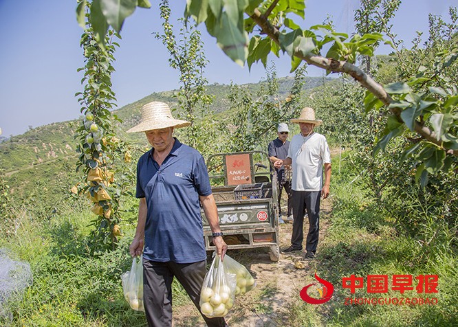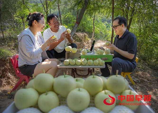 如今,郭青明主管采摘园的日常运营,妻子则在云丘山旅游路边的树林里开展直播销售,线上线下联动让果园名气渐长。每天前来采摘的游客络绎不绝,车辆排起长队,夫妻俩不仅靠这片梨园走出了富裕路,更成了当地乡村振兴的生动典范。