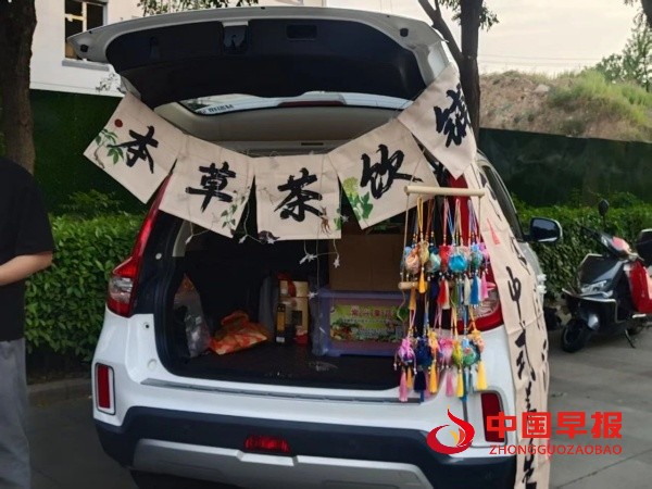 车尾箱一开,惊喜自然来,潮酷的后备箱碰撞千年的中医药文化,一场奇妙的跨界之旅就此启程。渭南市华州区中医医院的医务工作者现场设立的“草本识趣摊”“本草茶饮铺”“手作中药香囊”等摊位让过往群众全方位的感受中医药的魅力。