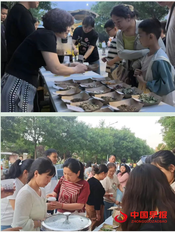 一半是药草香,一半是烟火气,百姓一边逛集市,一边赏草药,一边品茶饮,一边制作香囊。逛一车烟火,学一手养生术,生津止渴的酸梅汤,瞬间在舌尖炸开,暑气瞬间被浇灭,喉头的燥热化作绵长回甘,让赶集的疲惫、暑热瞬间浸在这杯沁凉里。华州区中医医院医务工作者们通过不断的调配改进中药配方,改进后的本草养生茶饮越来越受群众的追捧。本次活动吸引超1000名群众参与,共推广出中药香囊600余份,中药茶饮1000余杯。